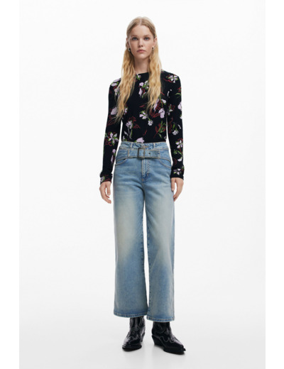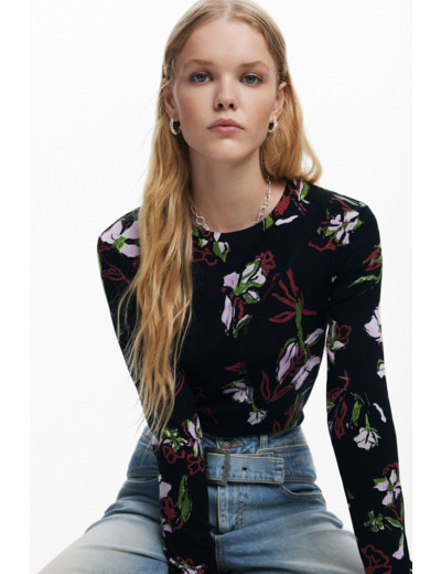 Affirmez votre style avec ce T-shirt en maille à manches longues, sublimé par un imprimé floral délicat. Une pièce signée Desigual qui allie confort et originalité pour vos looks quotidiens.
