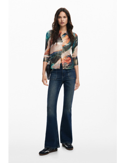 Affichez une allure dynamique et colorée avec cette blouse à manches longues signée Desigual, où le motif à bandes horizontales multicolores apporte une touche d’originalité à votre garde-robe. Sa fermeture boutonnée ajoute une note sophistiquée tout en facilitant l’enfilage.