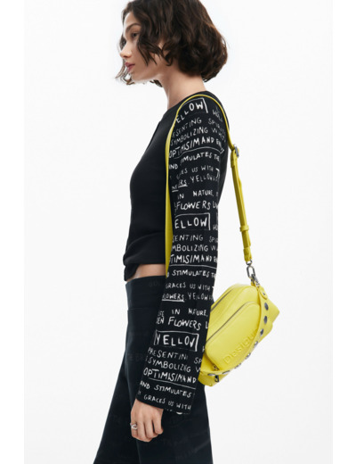 Réponse. Les phrases imprimées sur les manches apportent une touche originale et moderne, signature de la marque Desigual.