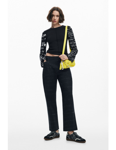 Affirmez votre style avec ce T-shirt à manches longues signé Desigual, où confort et originalité se rencontrent. Son col rond classique et ses phrases imprimées sur les manches apportent une touche unique à votre tenue.