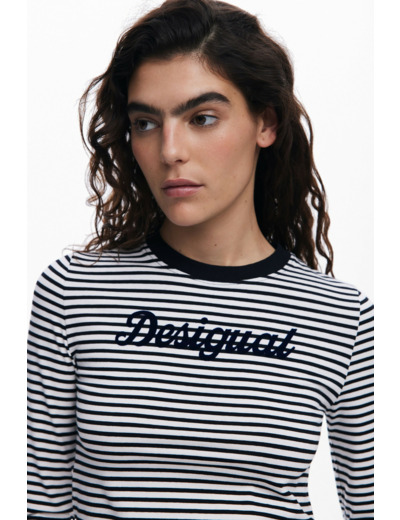 Affirmez votre style avec ce T-shirt à manches longues rayé, signé Desigual, où audace et confort se rencontrent. Un basique revisité qui dynamise votre garde-robe instantanément.