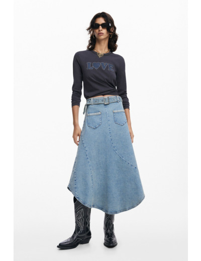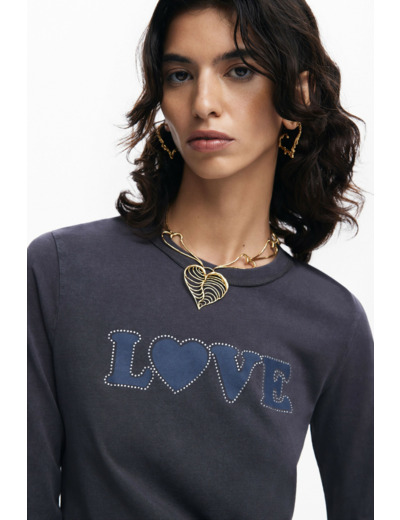 Affichez votre style avec ce T-shirt à manches longues signé Desigual, où simplicité rime avec originalité grâce à l’inscription "Love" subtilement posée. Une pièce essentielle pour allier confort et attitude au quotidien.