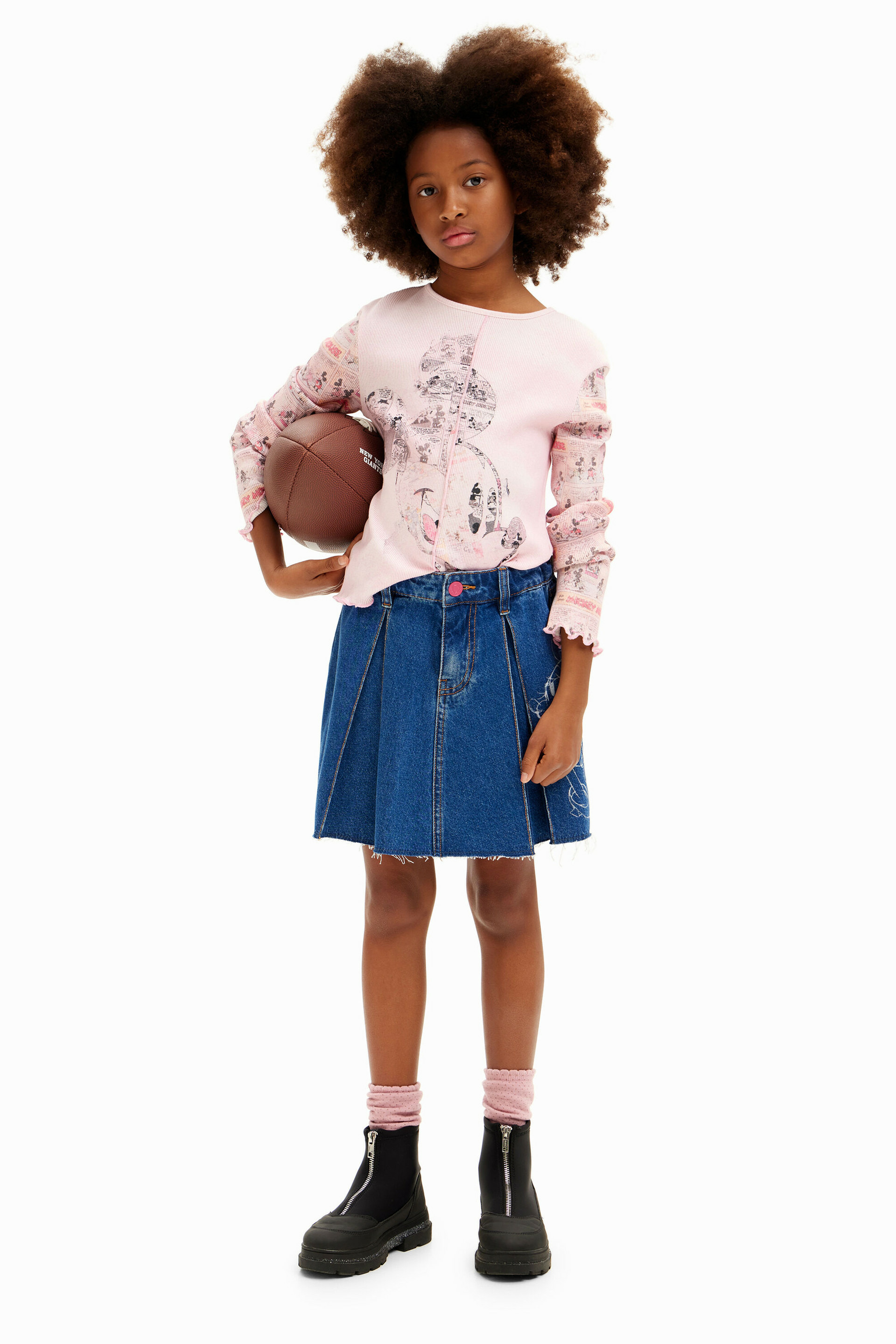 Affichez votre passion pour l’univers Disney avec ce T-shirt à manches longues Desigual, où Mickey Mouse s’invite en héros sur un motif bande dessinée unique. Un design audacieux qui allie confort et style pour un look urbain et décontracté.