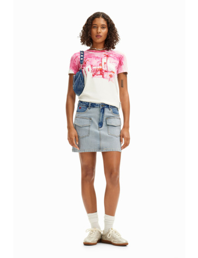 Affichez votre style avec ce T-shirt à manches courtes rose et blanc, sublimé par une illustration de paysage unique. Une pièce incontournable de la nouvelle collection Femme SS24 Desigual, pensée pour révéler votre personnalité.