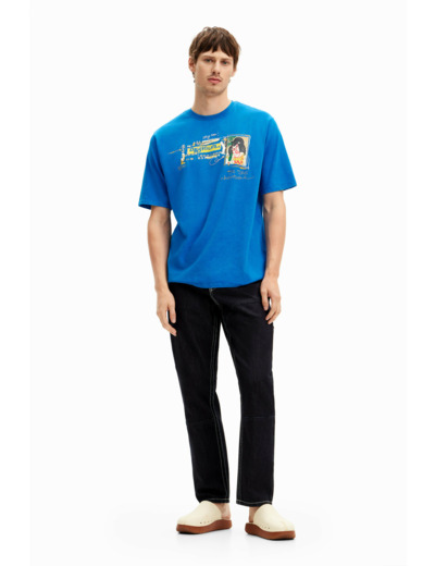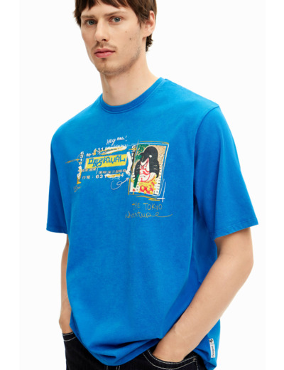 Lavage en machine à froid à l’envers, cycle délicat. T-shirt à manches courtes, coupe droite, illustration imprimée de style japonais. Marque Desigual, reconnue pour ses créations originales et qualitatives.
