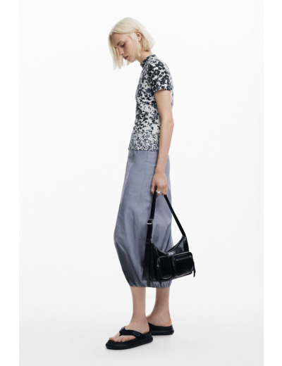 Affirmez votre style avec ce T-shirt ajusté à manches courtes et col roulé, sublimé par un imprimé floral asymétrique unique. Une pièce qui allie modernité et élégance pour un look résolument contemporain.