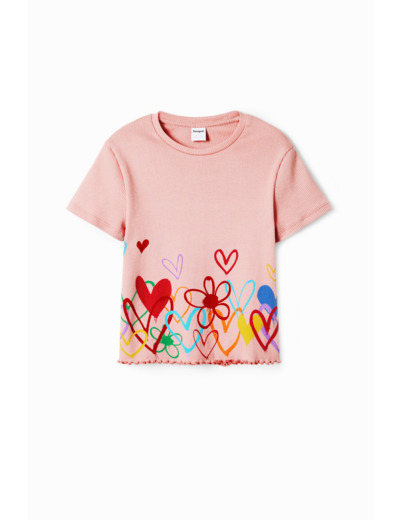 Affichez votre style avec ce T-shirt à manches courtes signé Desigual, où la simplicité rencontre une touche d’originalité grâce aux illustrations en forme de cœur en bas. Un basique revisité pour sublimer votre quotidien.