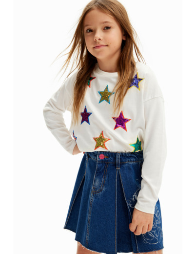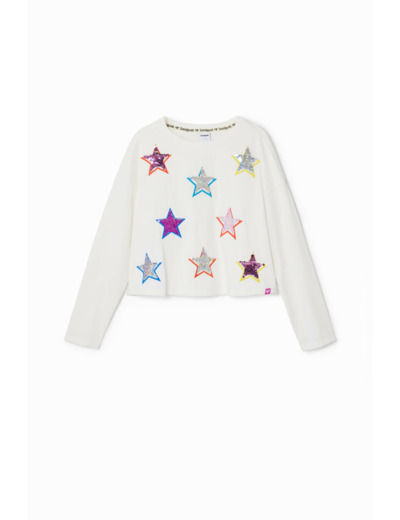 Affichez votre style avec ce T-shirt à manches longues en coton, orné d’un imprimé d’étoiles colorées qui dynamise chaque tenue. Une pièce signée Desigual, parfaite pour allier confort et originalité au quotidien.