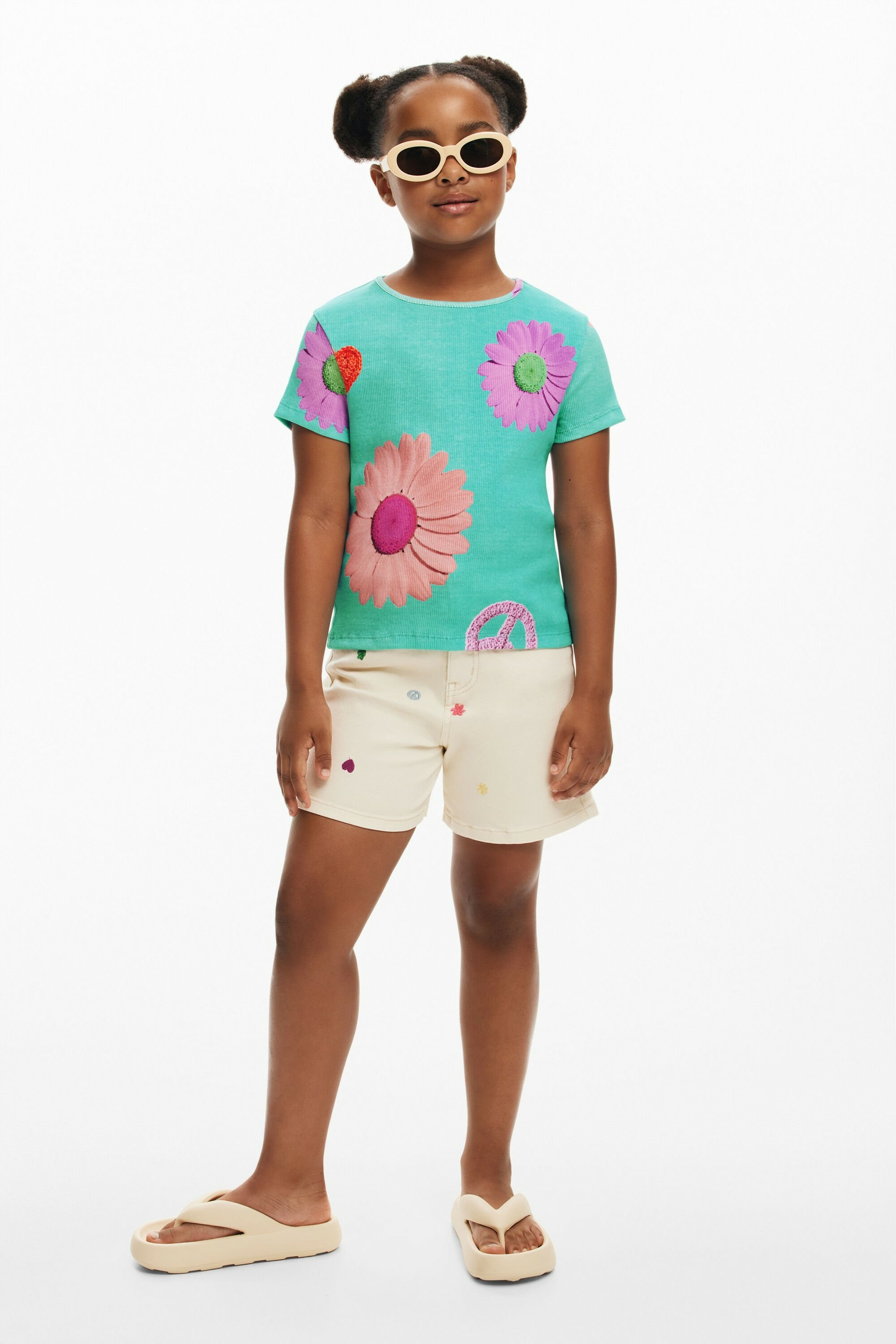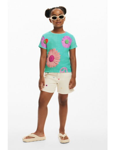 Confectionné dans une matière côtelée qui épouse subtilement les formes, ce T-shirt Desigual apporte une touche de modernité à votre garde-robe. Son imprimé floral, finement travaillé, apporte une note de légèreté et de fraîcheur, parfaite pour illuminer vos looks printaniers ou estivaux. Facile à associer, il s’adapte aussi bien à un jean qu’à une jupe fluide.