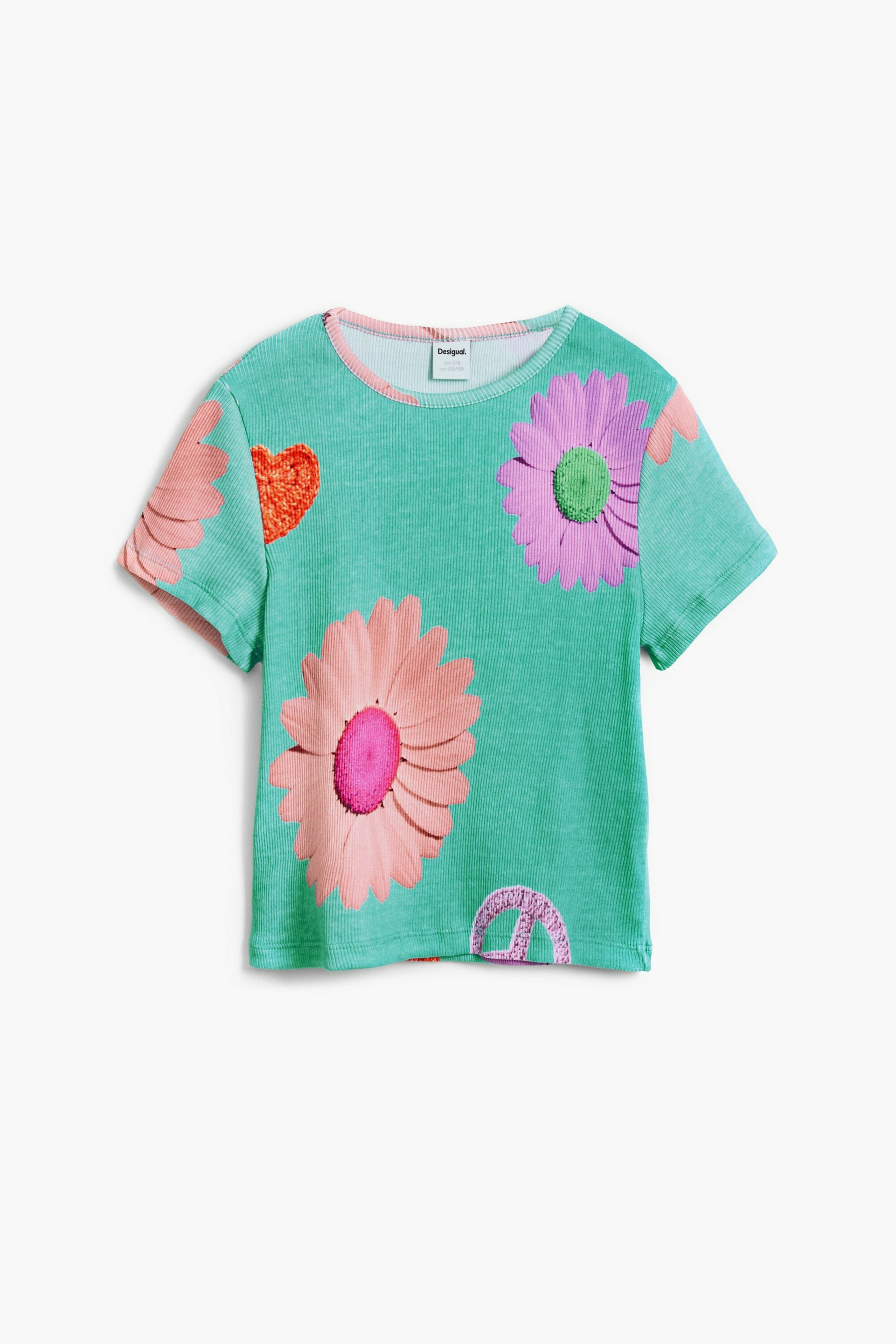 Affichez une allure fraîche et féminine avec ce T-shirt côtelé à manches courtes, sublimé par un imprimé floral délicat. Un essentiel qui allie confort et style pour vos journées actives ou vos sorties décontractées.