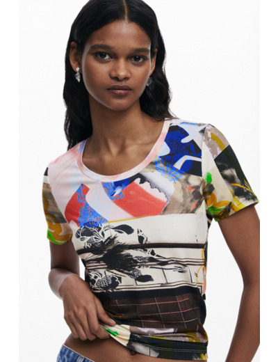 Affichez votre originalité avec ce T-shirt à manches courtes et col rond signé Desigual, sublimé par un imprimé Arty collage unique. Un basique revisité qui dynamise instantanément votre style.