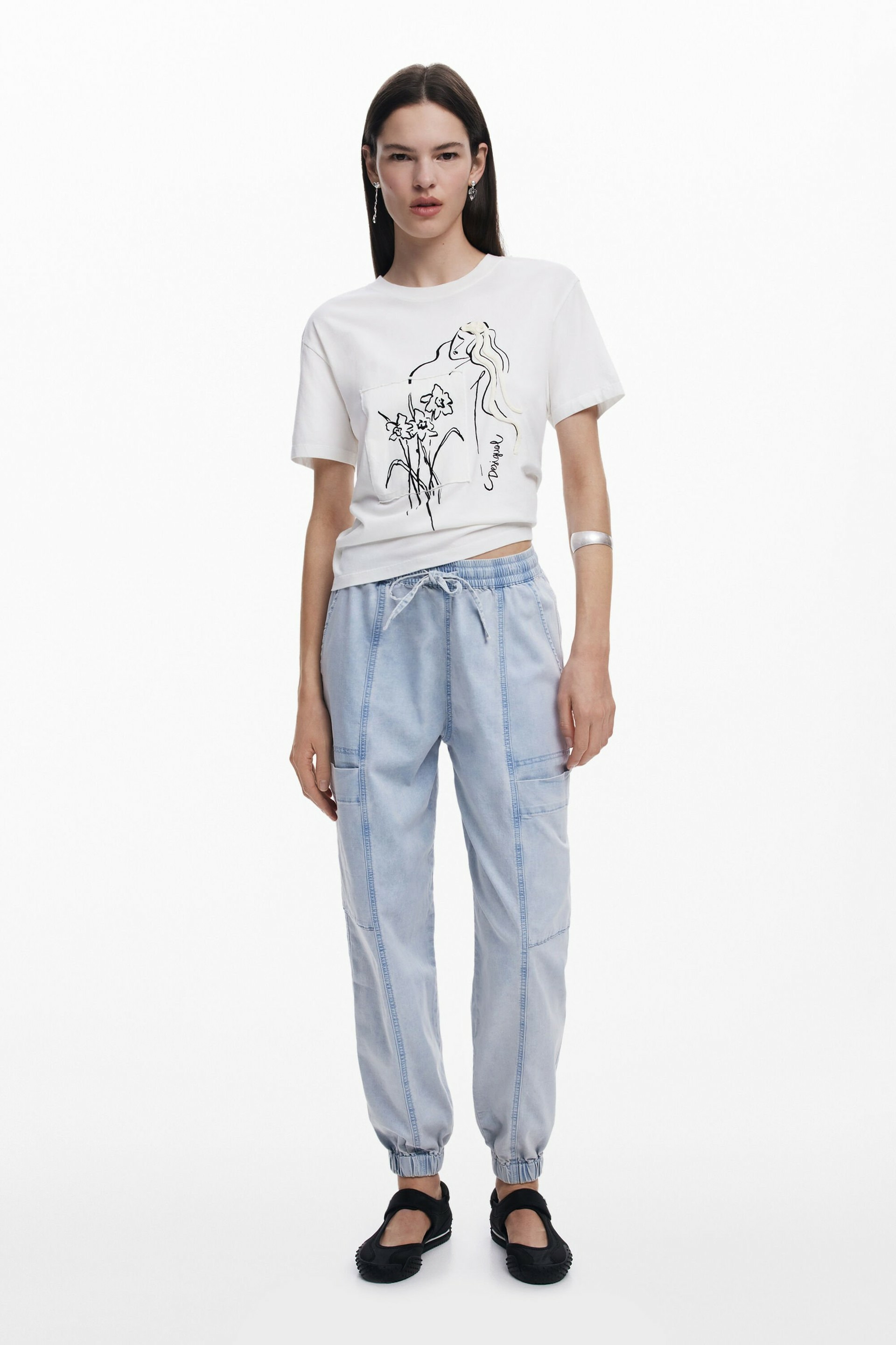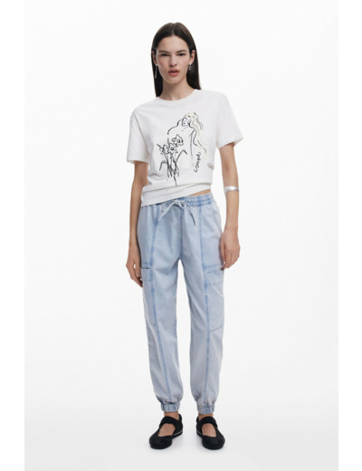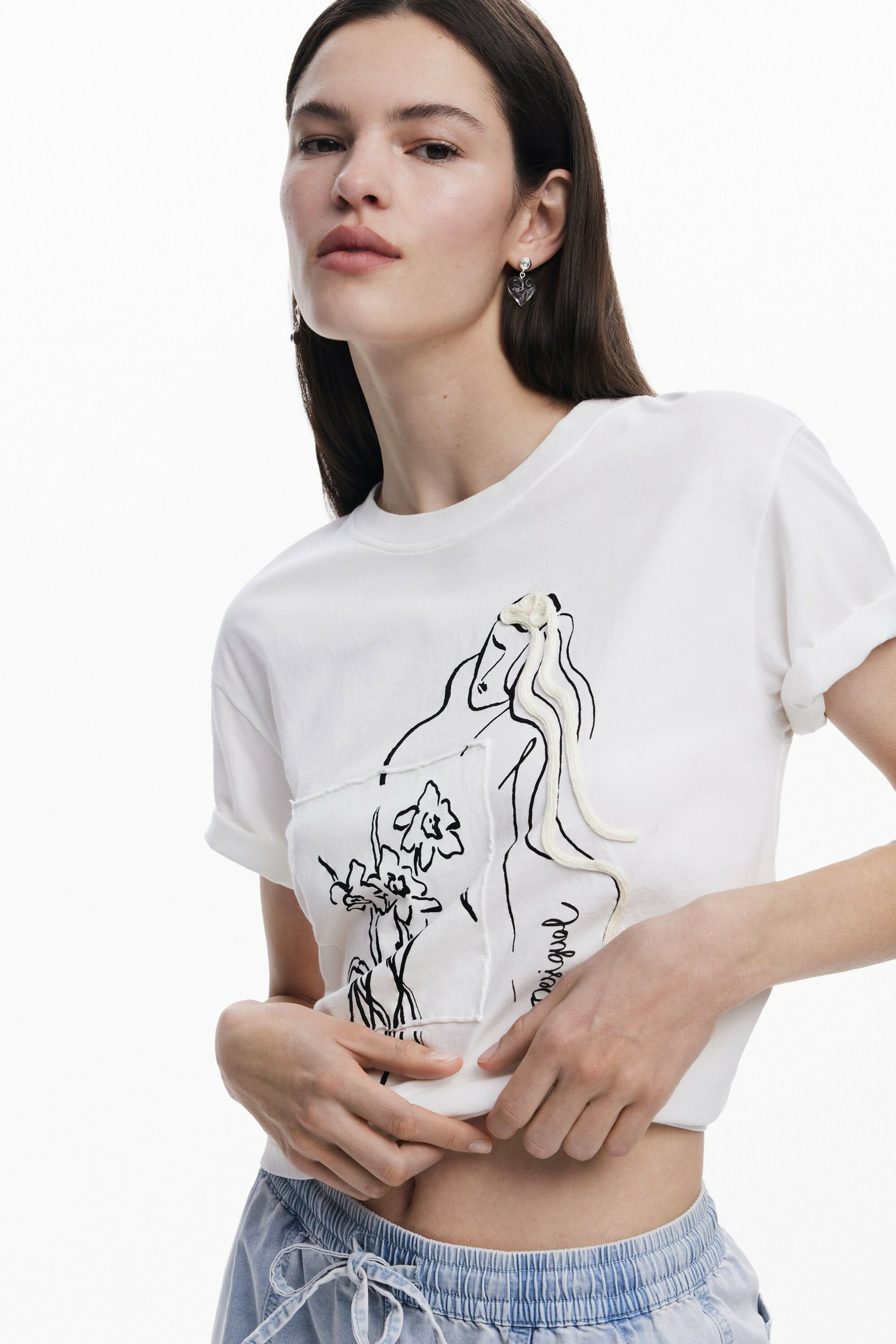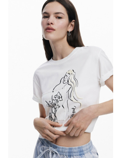 Affichez votre féminité avec ce T-shirt à manches courtes et col rond, sublimé par une applique de cordon délicate et un imprimé floral raffiné. Une pièce signée Desigual qui allie originalité et élégance pour un look résolument moderne.
