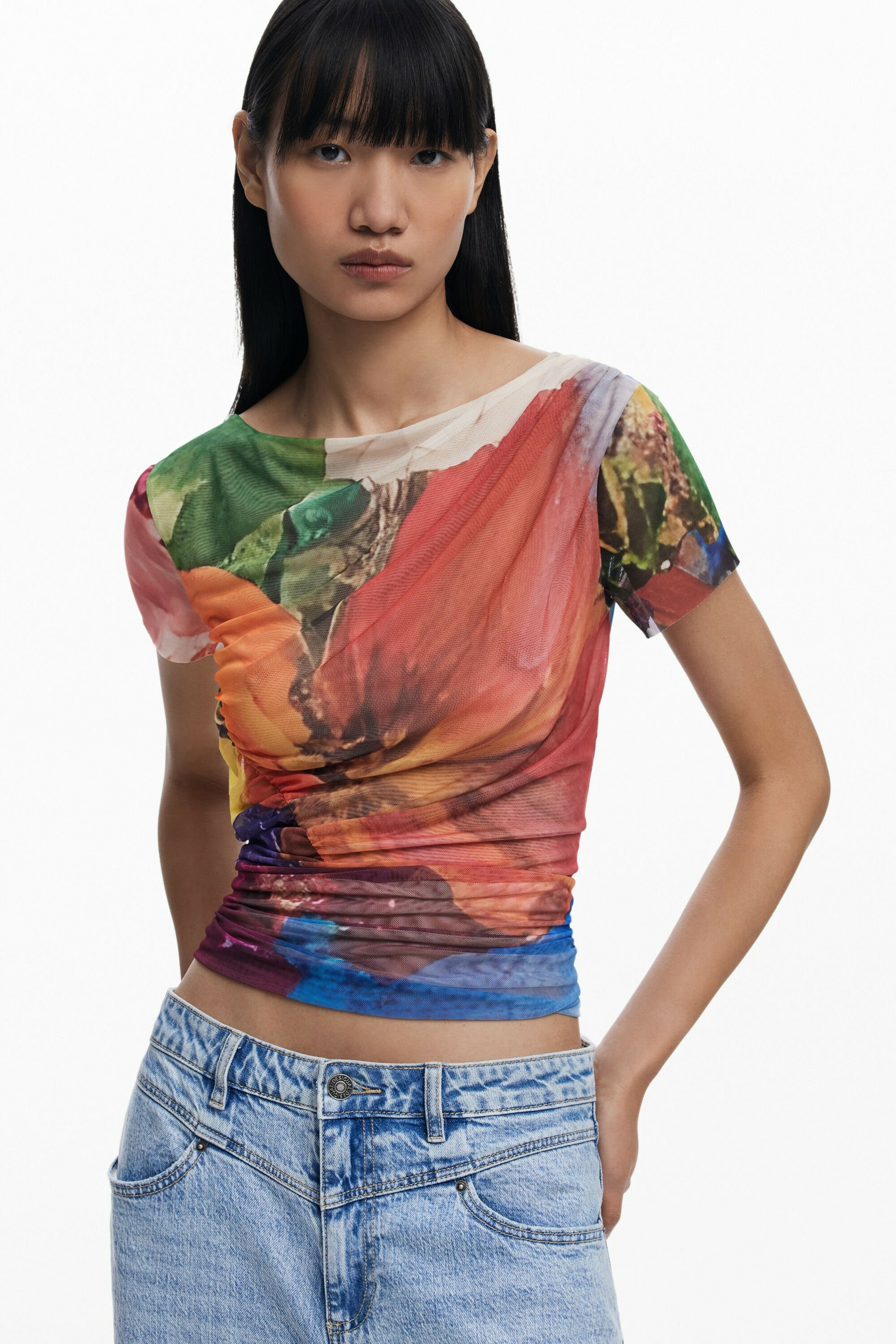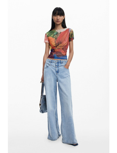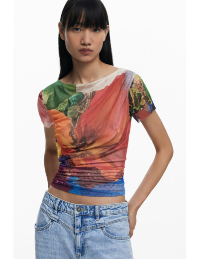 Sublimez votre allure avec ce T-shirt en mousseline signé Desigual, où élégance et modernité s’entrelacent. Son drapé asymétrique frontal et son imprimé floral apportent une touche unique à votre style quotidien.