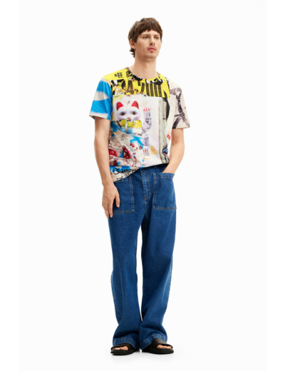 Affichez un style urbain affirmé avec ce T-shirt en maille, col rond, sublimé par un imprimé inspiré de la rue japonaise. Une pièce Desigual qui allie audace graphique et confort quotidien.