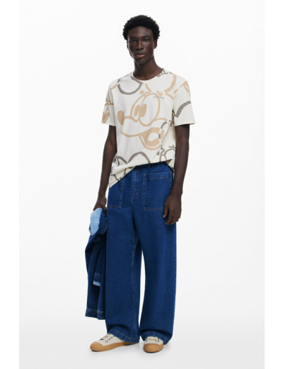Conçu pour ceux qui aiment se démarquer sans effort, ce T-shirt à manches courtes et col rond offre une silhouette fluide et agréable à porter toute la journée. Le motif Mickey Mouse, fidèle à l’univers Desigual, apporte une touche ludique et vintage, parfaite pour dynamiser vos tenues casual. Sa matière douce et légère garantit un confort optimal, que ce soit en ville ou en week-end.