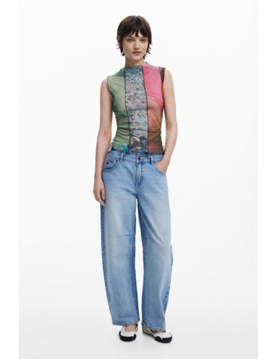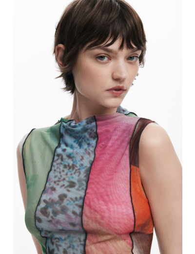 Confectionné pour épouser parfaitement la silhouette, ce débardeur Desigual combine confort et audace. Sa coupe près du corps valorise chaque mouvement tandis que l’imprimé graphique inspire une allure décontractée mais sophistiquée, idéale pour vos looks urbains ou estivaux.