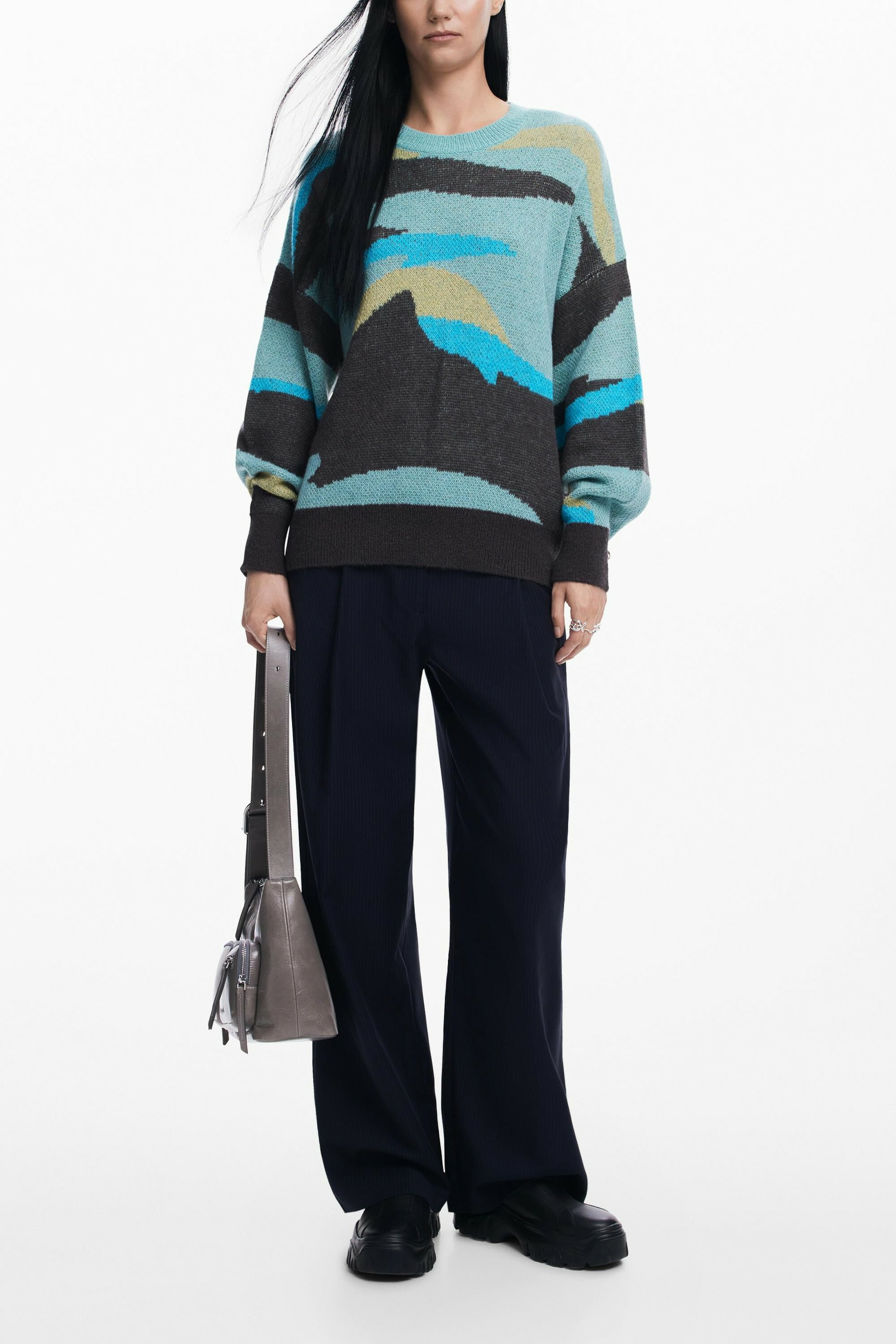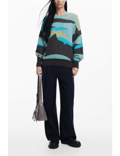 Plongez dans un univers de douceur et d’originalité avec ce pull en maille à manches longues signé Desigual. Son motif de paysage unique apporte une touche artistique à votre garde-robe hivernale.