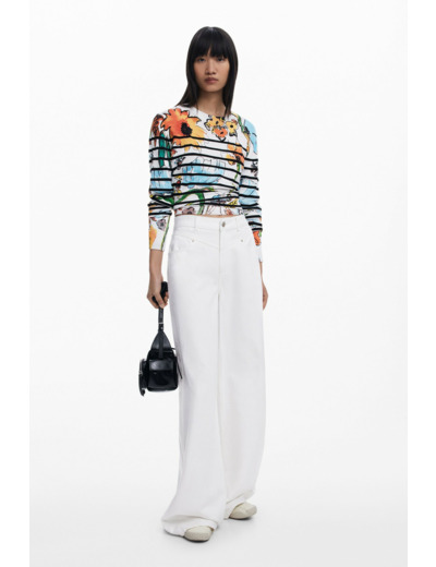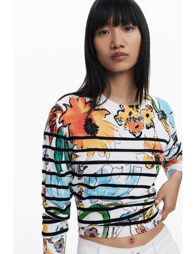 Fabriqué dans une matière épaisse de qualité, ce pullover à manches courtes est conçu pour durer. Pour préserver l’éclat des couleurs et la finesse des impressions, il est recommandé de le laver en machine à froid à l’envers, en cycle très délicat.