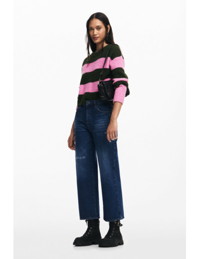 Confectionné dans une maille épaisse, ce pull allie confort et style pour affronter les journées fraîches avec assurance. Sa coupe ajustée met en valeur la silhouette tout en offrant une grande liberté de mouvement, idéale pour un look casual chic. Les rayures bicolores rythment le design et s’adaptent facilement à vos tenues du quotidien.