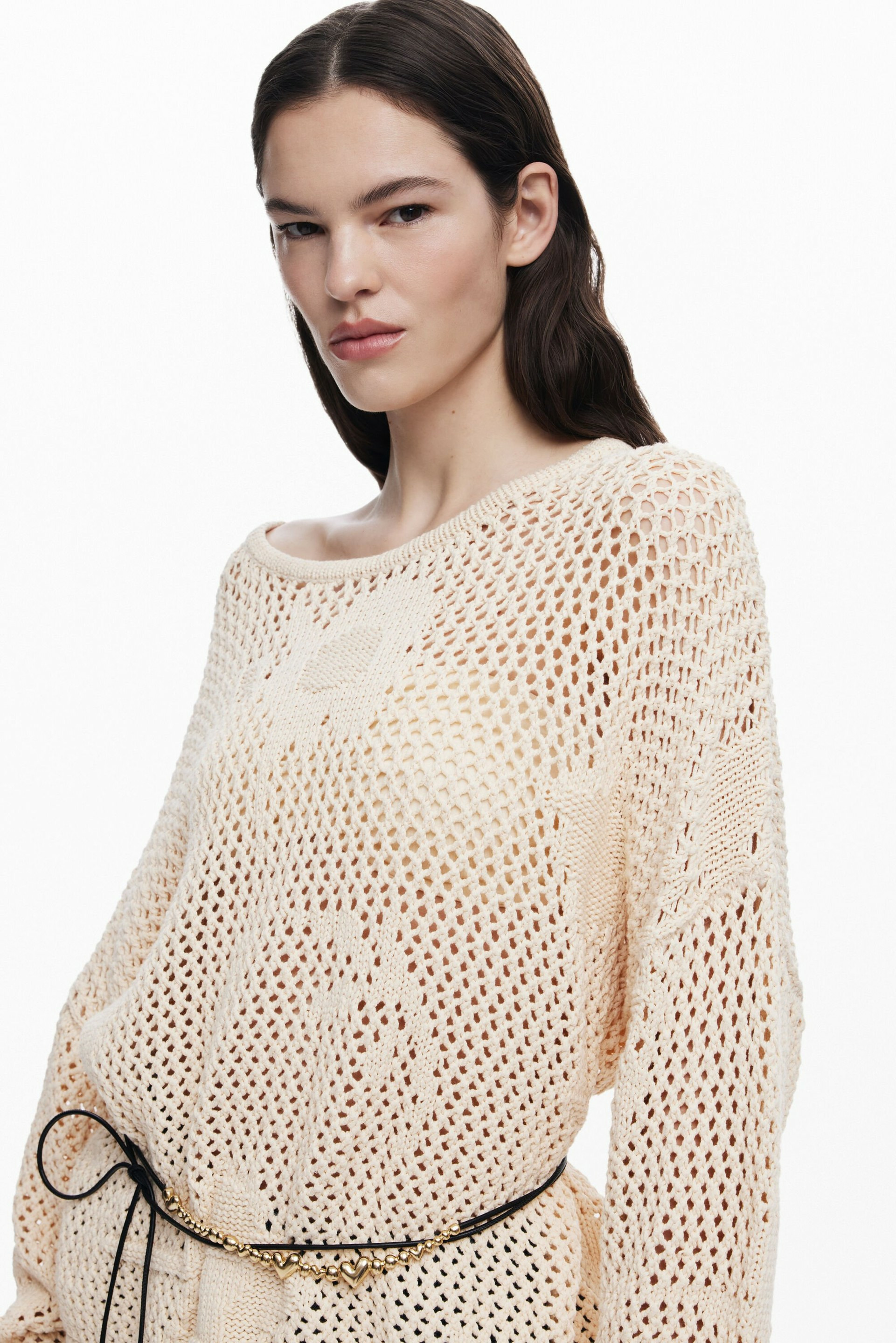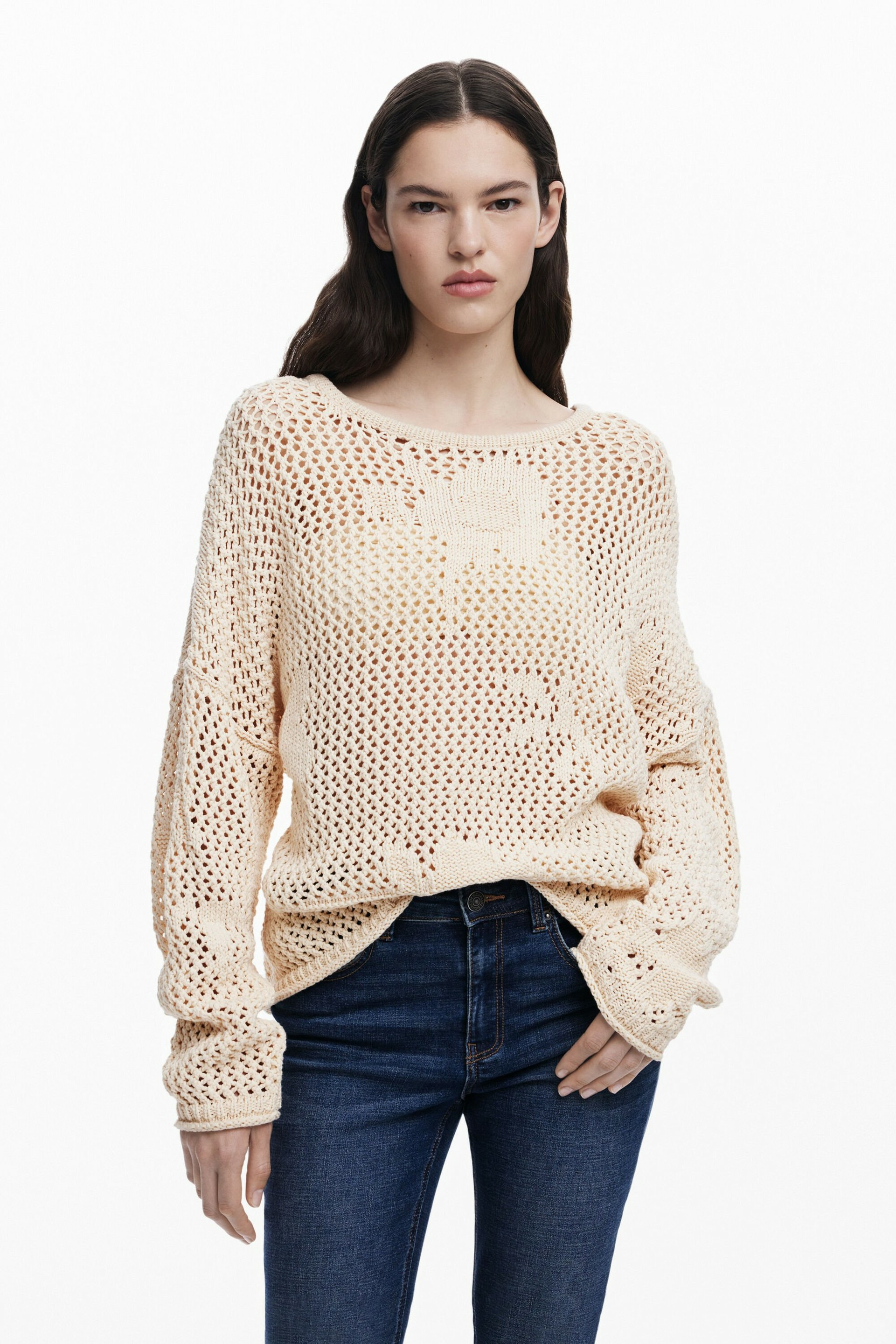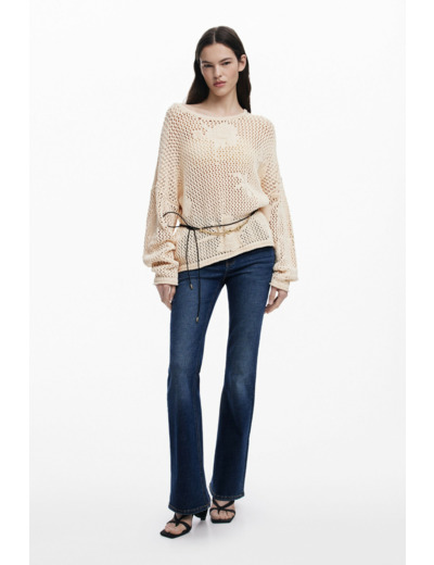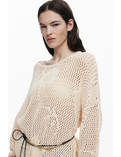 Adoptez l’élégance décontractée avec ce pull à col rond ouvert signé Desigual. Sa coupe fluide et ses motifs floraux ajourés apportent une touche de fraîcheur et de légèreté à votre garde-robe.