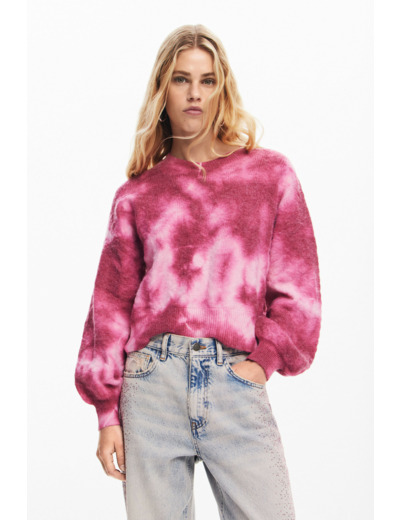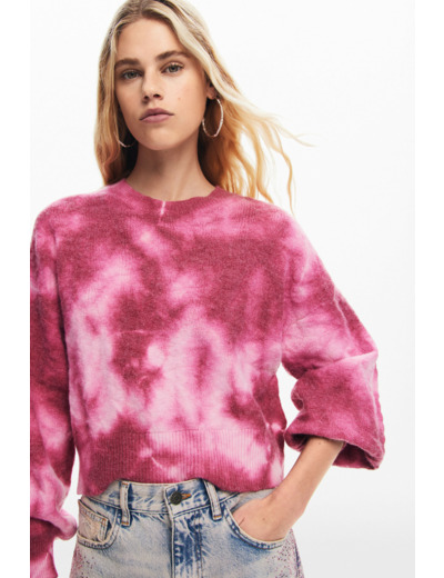 Affichez une allure unique avec ce pull en maille à manches longues, sublimé par un motif tie-dye audacieux et un col rond classique. Une pièce qui allie confort et style pour dynamiser votre garde-robe.