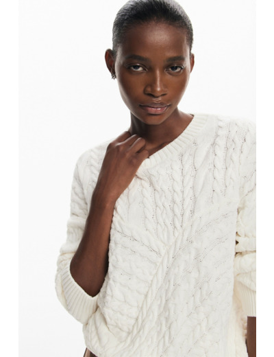 Adoptez l’élégance décontractée avec ce pull en maille fine, manches longues et col rond, sublimé par des détails en chevrons subtils. Une pièce essentielle pour enrichir votre garde-robe avec style et confort.