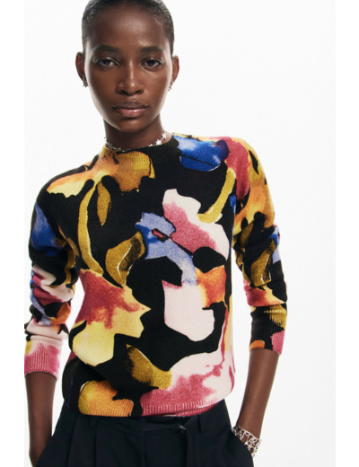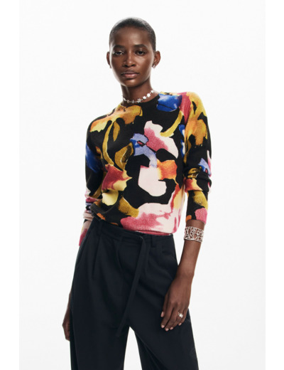 Confectionné dans une maille légère, ce pull à manches longues épouse délicatement la silhouette tout en offrant un confort optimal. Son design floral arty réinvente le classique du pull fin, parfait pour dynamiser vos looks de saison avec originalité et style.