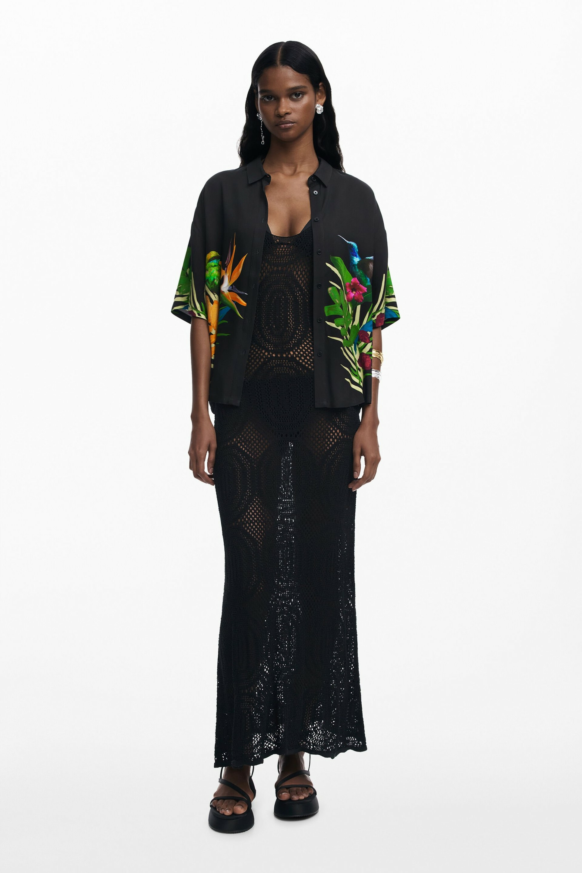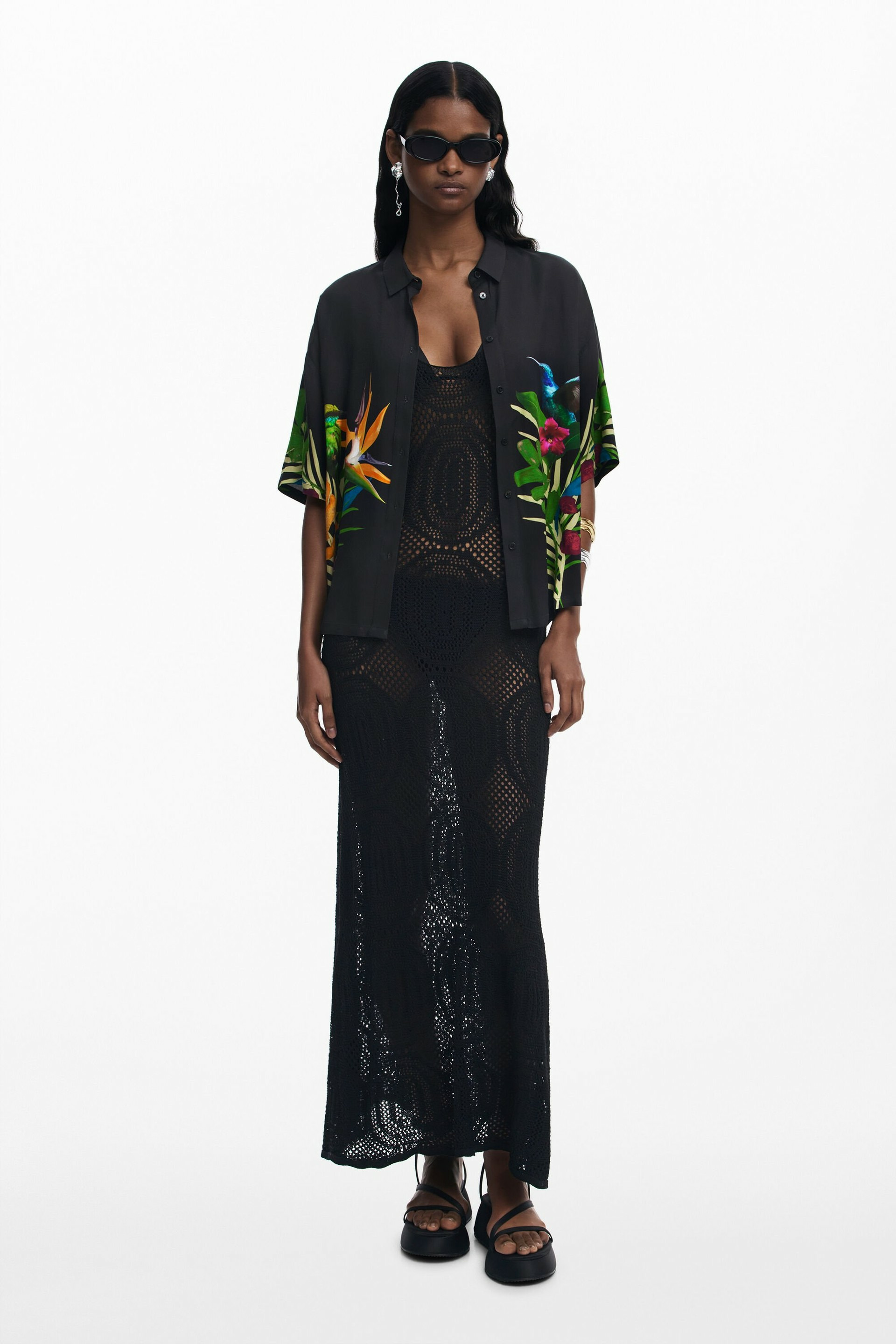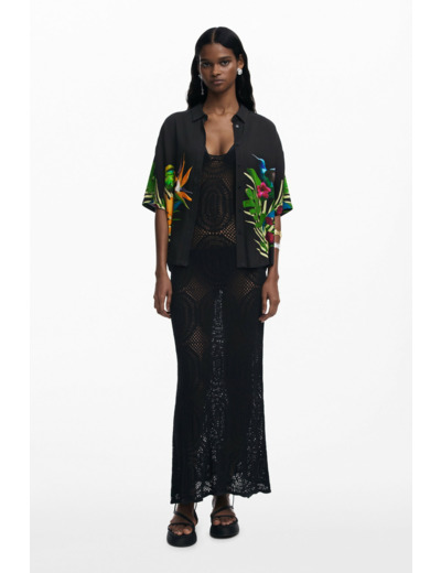Conçue pour apporter une touche d’exotisme à vos tenues, cette chemise Desigual combine élégance et décontraction. Son col chemise structuré équilibre parfaitement l’imprimé floral, offrant un look à la fois frais et sophistiqué, idéal pour vos sorties plage ou vos moments de détente en ville.