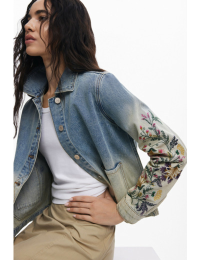 Affirmez votre style avec cette veste en jean Desigual, où la tradition rencontre l’audace. Les fleurs colorées brodées sur les manches apportent une touche d’originalité à un classique intemporel.