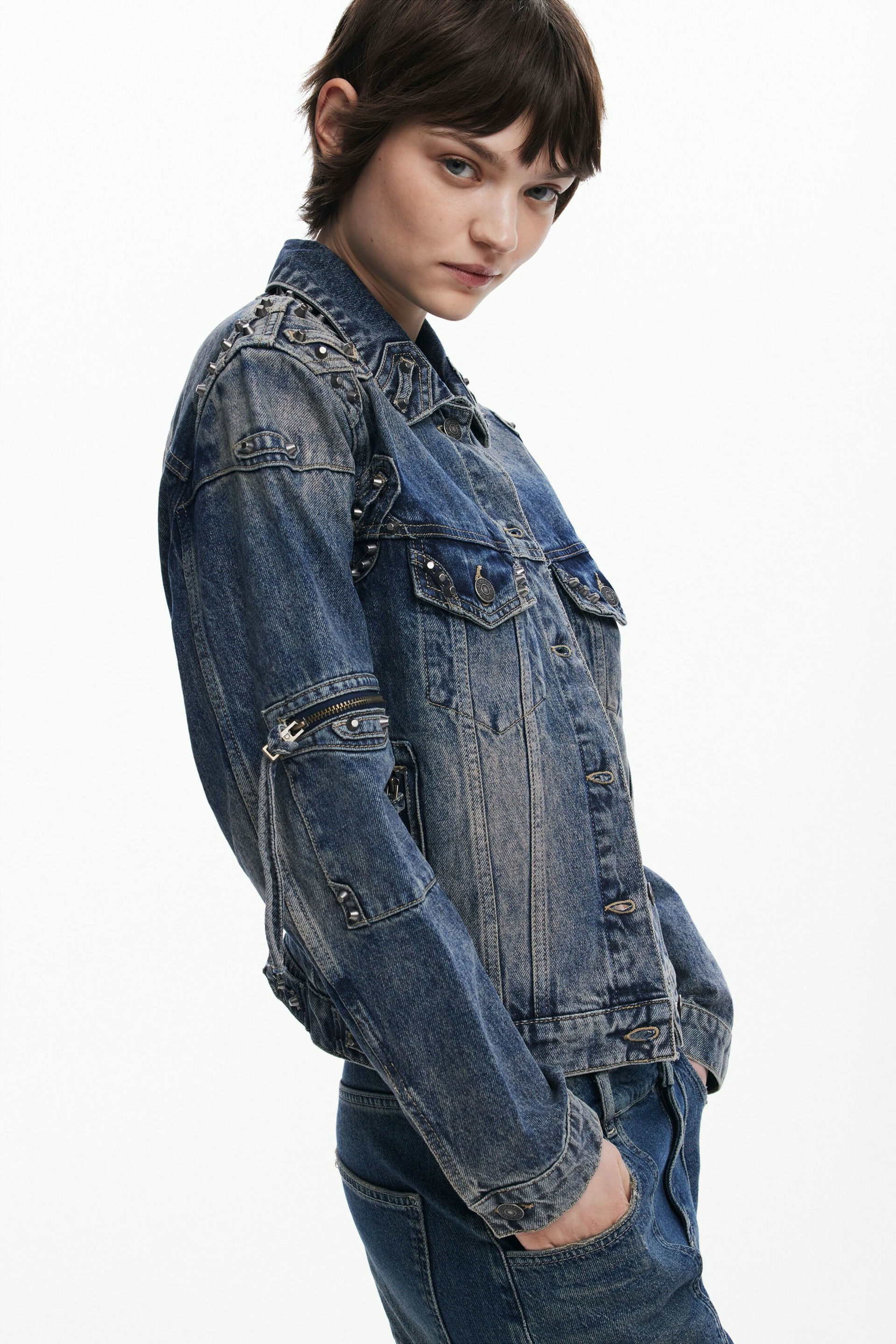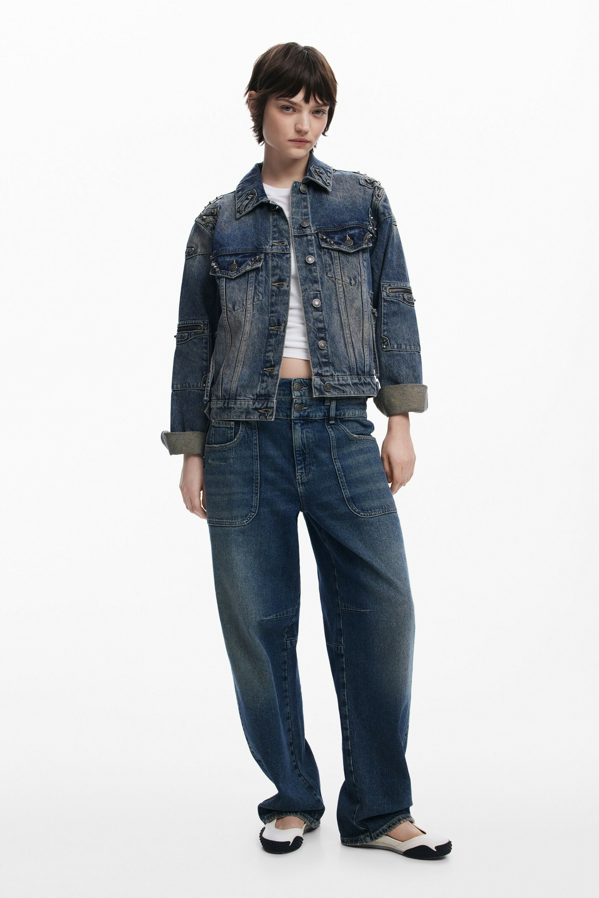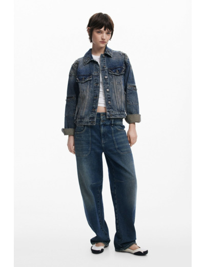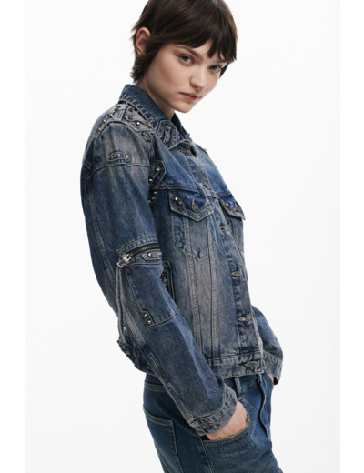 Affirmez votre style avec cette veste trucker en denim signée Desigual, alliant audace et fonctionnalité. Ses clous décoratifs et ses grandes poches avant apportent une touche unique à un classique revisité.