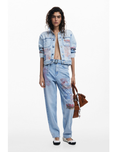 Fabriquée en denim de qualité, cette veste se ferme avec des boutons robustes. Elle est recommandée pour un lavage en machine à froid à l’envers, cycle très délicat, afin de préserver les couleurs et les broderies.