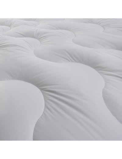 Enveloppe 100% Polyester (dont 60% Polyester Respirant TopCool), Garnissage 100% Polyester CIRCUL'AIR - Fible Creuse Siliconée Issue de PET - Fabriquée à partir de bouteilles recyclées, Grammage 200 g/m², Piquage Vague, Finition Biais Blanc - Double piqûre de renfort