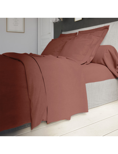 Laissez-vous envelopper de douceur avec cette housse de couette en percale de coton dans la teinte brique.
