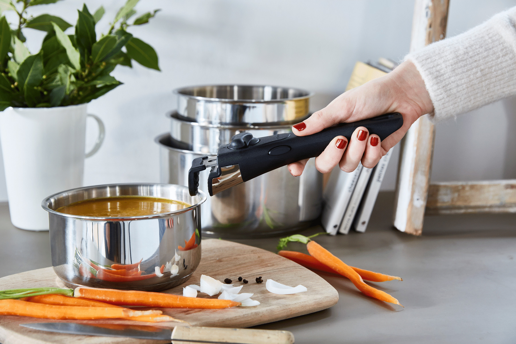Profitez d’une expérience culinaire fluide grâce à leur légèreté (2.62 kg pour l’ensemble) et leur format adapté, allant de 14 à 20 cm. Le système amovible facilite le rangement et le nettoyage, vous permettant de gagner du temps sans compromis sur la qualité.