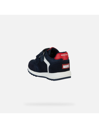 Conçues en collaboration entre Geox et Marvel, ces chaussures pour bébé garçon se distinguent par leur tige en cuir velours souple et nylon, ornée d’imprimés Spider-Man en bleu marine et rouge, couleurs iconiques du super-héros. Leur design running rétro apporte une touche décontractée et moderne, idéale pour le quotidien des tout-petits. Faciles à enfiler et ajuster, elles garantissent confort et maintien tout au long de la journée.
