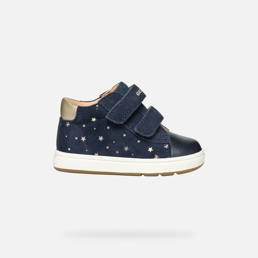 Conçues pour les petites aventurières, ces chaussures basses marient daim imprimé et cuir foulonné nacré pour un rendu chic et délicat. La teinte bleu marine associée au platine et la fine décoration étoilée apportent une touche féminine subtile, parfaite pour compléter toutes les tenues de votre enfant. Respirantes et souples, elles garantissent un maintien optimal tout en respectant la fragilité des premiers pas.