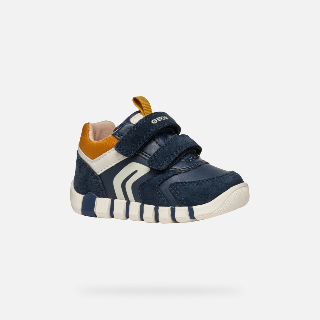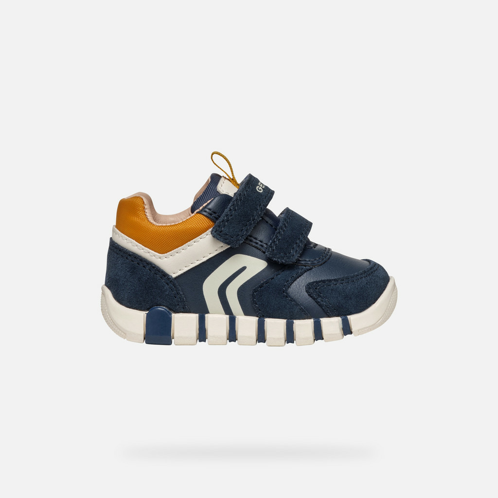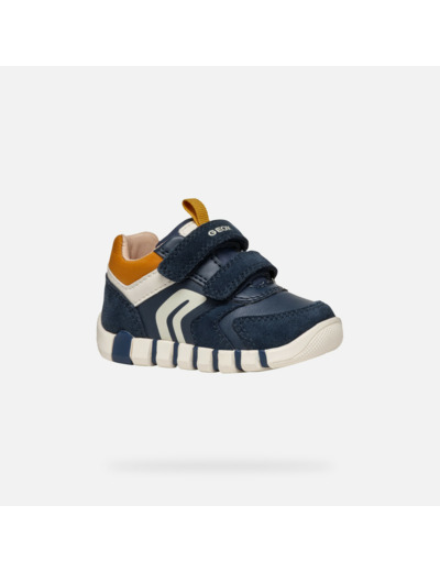 Conçues pour les petits explorateurs, ces chaussures mêlent cuir velours et matières à effet cuir dans un duo bleu marine et jaune foncé qui dynamise les tenues. Leur design souple et amorti garantit une liberté de mouvement optimale, tandis que leur esthétique soignée apporte une touche décontractée et moderne aux looks quotidiens de votre enfant.