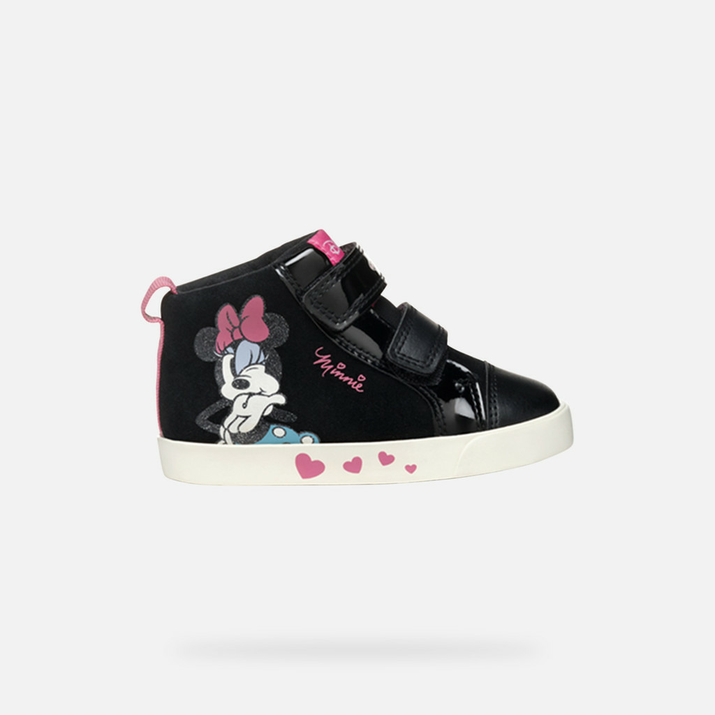 Conçues en cuir velours souple et matière à effet cuir verni, ces sneakers jouent sur un élégant duo noir et vieux rose. L’imprimé Minnie sur la tige apporte une note tendre et ludique, parfaite pour égayer les tenues des plus petits. La silhouette semi-montante assure un maintien optimal tout en restant légère et facile à enfiler.