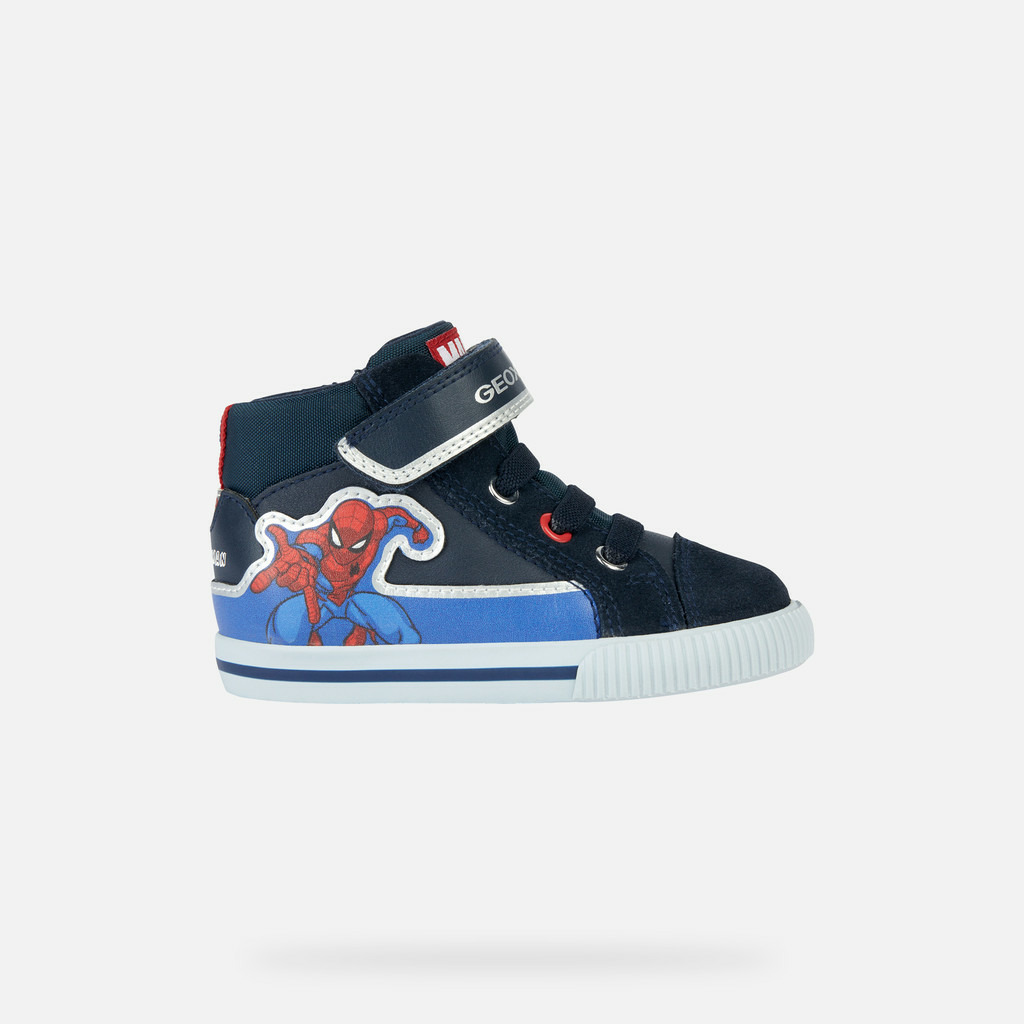 Conçues pour les bébés garçons actifs, ces sneakers semi-montantes s’inspirent des baskets sportives modernes. Leur bleu marine et bleu roi vibrants sont rehaussés par un patch Spider-Man et des graphismes dédiés, pour plaire aux fans dès le premier regard. La collaboration entre Geox et Marvel garantit un modèle à la fois souple et respirant, parfait pour accompagner les premiers pas avec légèreté et protection.