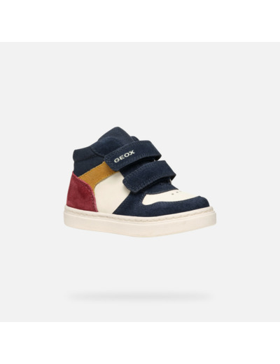 Conçues pour les enfants actifs, ces sneakers semi-montantes associent un cuir velours doux et un cuir nappa souple, garantissant légèreté et respirabilité. Le mariage du bleu marine et du beige clair apporte une touche raffinée qui s’adapte aussi bien aux tenues décontractées qu’aux looks plus soignés. La fermeture à double scratch facilite l’enfilage tout en assurant un maintien optimal.