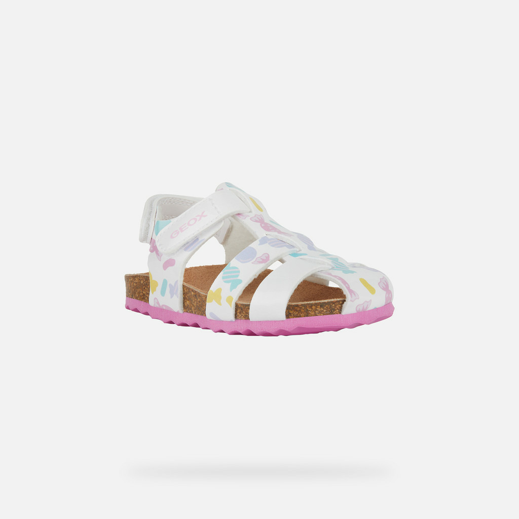 Conçues pour accompagner les premiers pas avec douceur, ces sandales se distinguent par leur tige blanche ornée d’un imprimé multicolore gourmand, parfait pour égayer les tenues de tous les jours. Leur matière à effet cuir verni apporte une touche élégante tout en restant facile à entretenir. La fermeture à scratch assure un ajustement rapide et sécurisé, idéal pour les enfants en mouvement.