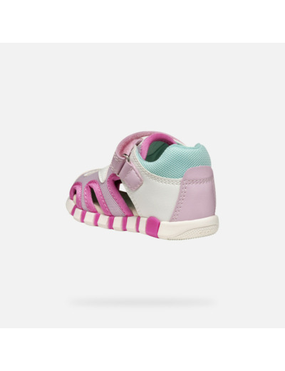 Ces sandales fermées sont conçues pour les petites exploratrices qui découvrent le monde. Leur design en blanc et fuchsia apporte une touche dynamique et moderne, tandis que la combinaison de matière à effet cuir et mesh assure respirabilité et protection. Souples et légères, elles suivent le rythme naturel du pied, pour un maintien parfait sans contrainte.