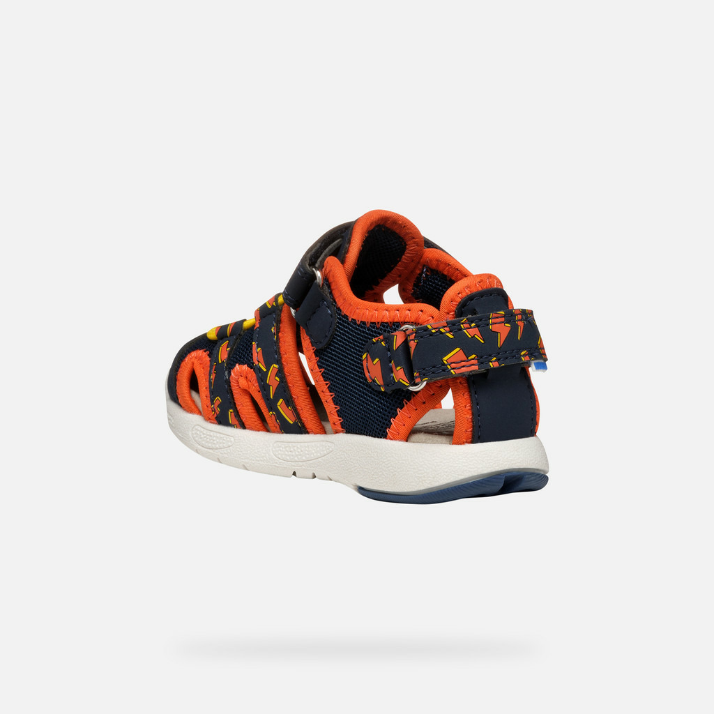 Offrez à votre petit garçon des sandales alliant protection et style pour ses premières aventures. Le modèle B Sandal Multy Boy associe légèreté et robustesse dans un design dynamique bleu marine et orange.