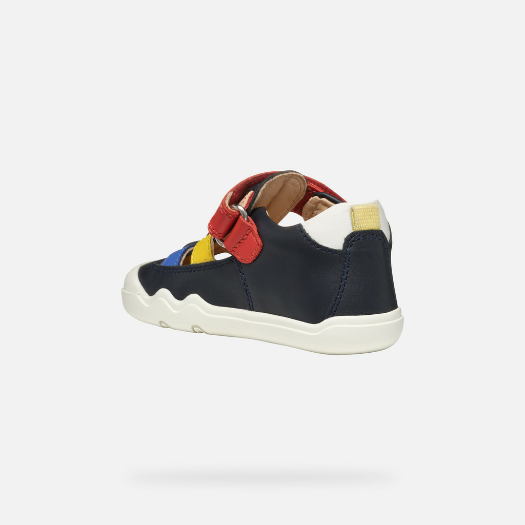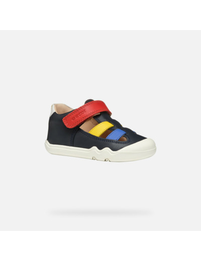 Ces sneakers basses en cuir nappa bleu marine, rehaussées de touches multicolores, sont pensées pour les petits explorateurs. Leur design souple et respirant assure une aisance parfaite, tandis que la fermeture à scratch facilite l’ajustement rapide. La semelle ultraflexible et fine, renforcée à l’avant, protège les pieds fragiles tout en laissant une grande liberté de mouvement.