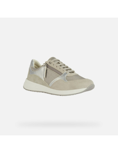 La tige associe cuir velours et tissu dans un subtil jeu de textures gris clair, apportant une touche moderne et raffinée à votre look printanier. La fermeture éclair latérale facilite l’enfilage, tandis que la silhouette dynamique souligne votre esprit sportif sans sacrifier l’élégance.