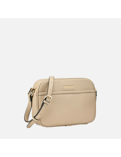 Composition 100% matériau synthétique à effet cuir foulonné. Dimensions compactes adaptées à la vie citadine. Bandoulière réglable pour un porté personnalisé. Coloris taupe polyvalent.