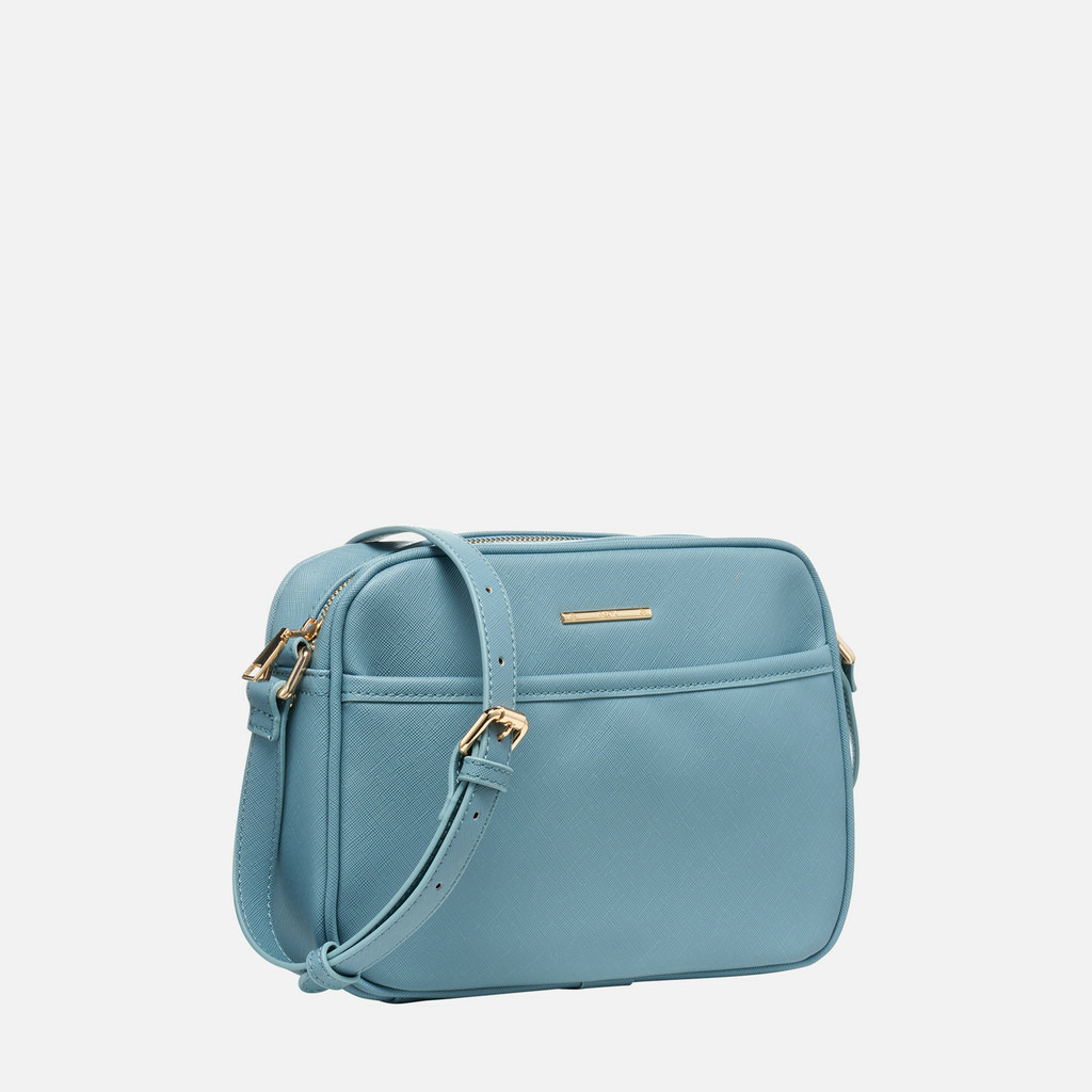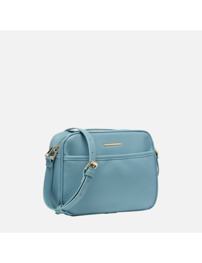Composition 100% matériau synthétique à effet cuir saffiano. Dimensions compactes, bandoulière ajustable, poches multiples à l’intérieur et à l’extérieur pour un rangement organisé.