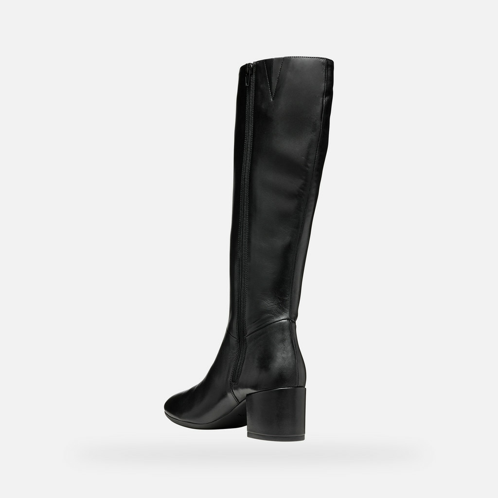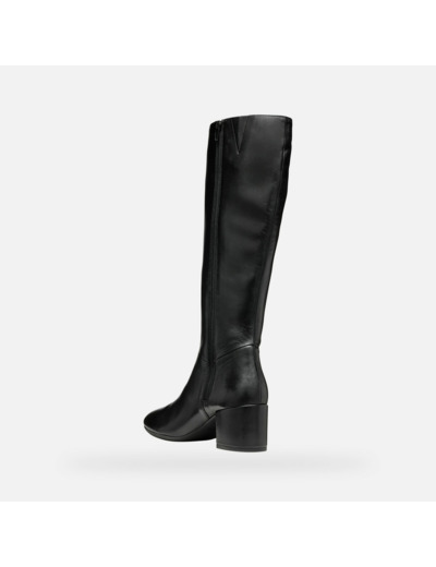 Composition : tige en cuir nappa 100%, doublure composée à 77% de tissu et 23% de synthétique. Talon moyen, bottes hautes noires. Marque Geox, reconnue pour son savoir-faire alliant style et technologie.