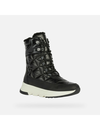 Alliez audace urbaine et confort absolu avec les bottines D FALENA B ABX de Geox. Leur design hybride noir associe cuir lisse et nylon matelassé pour un look moderne et affirmé, idéal pour affronter la saison froide avec style.