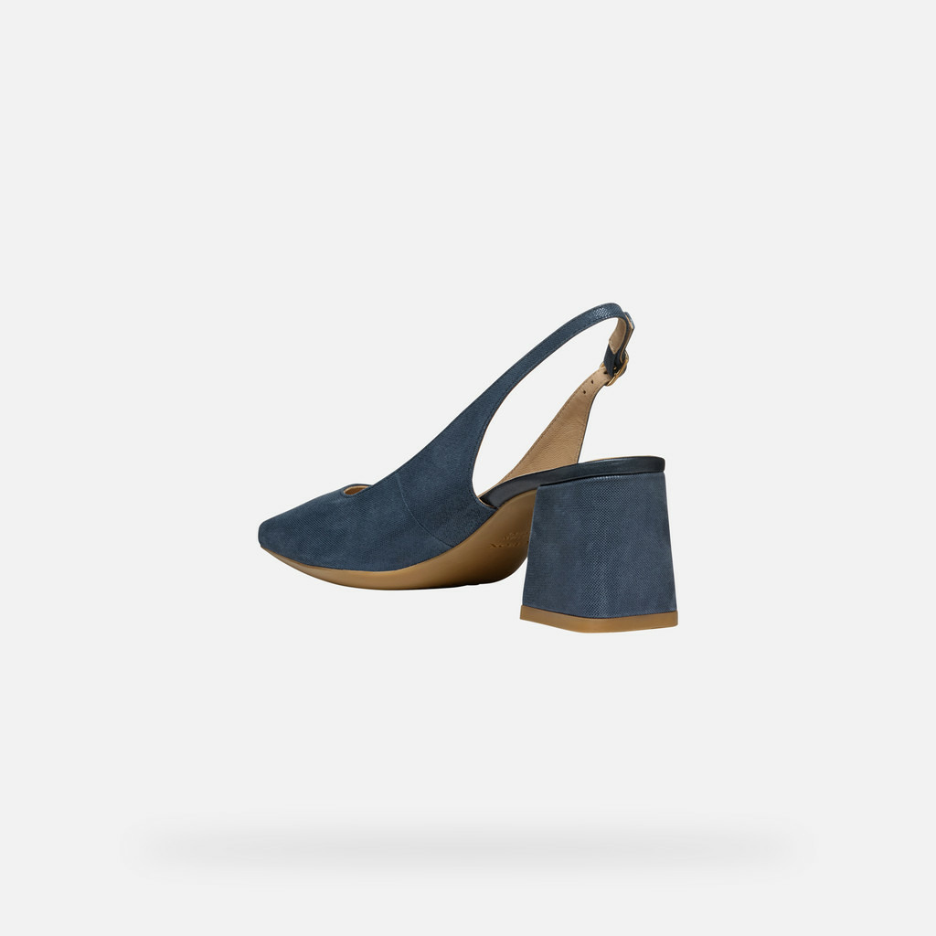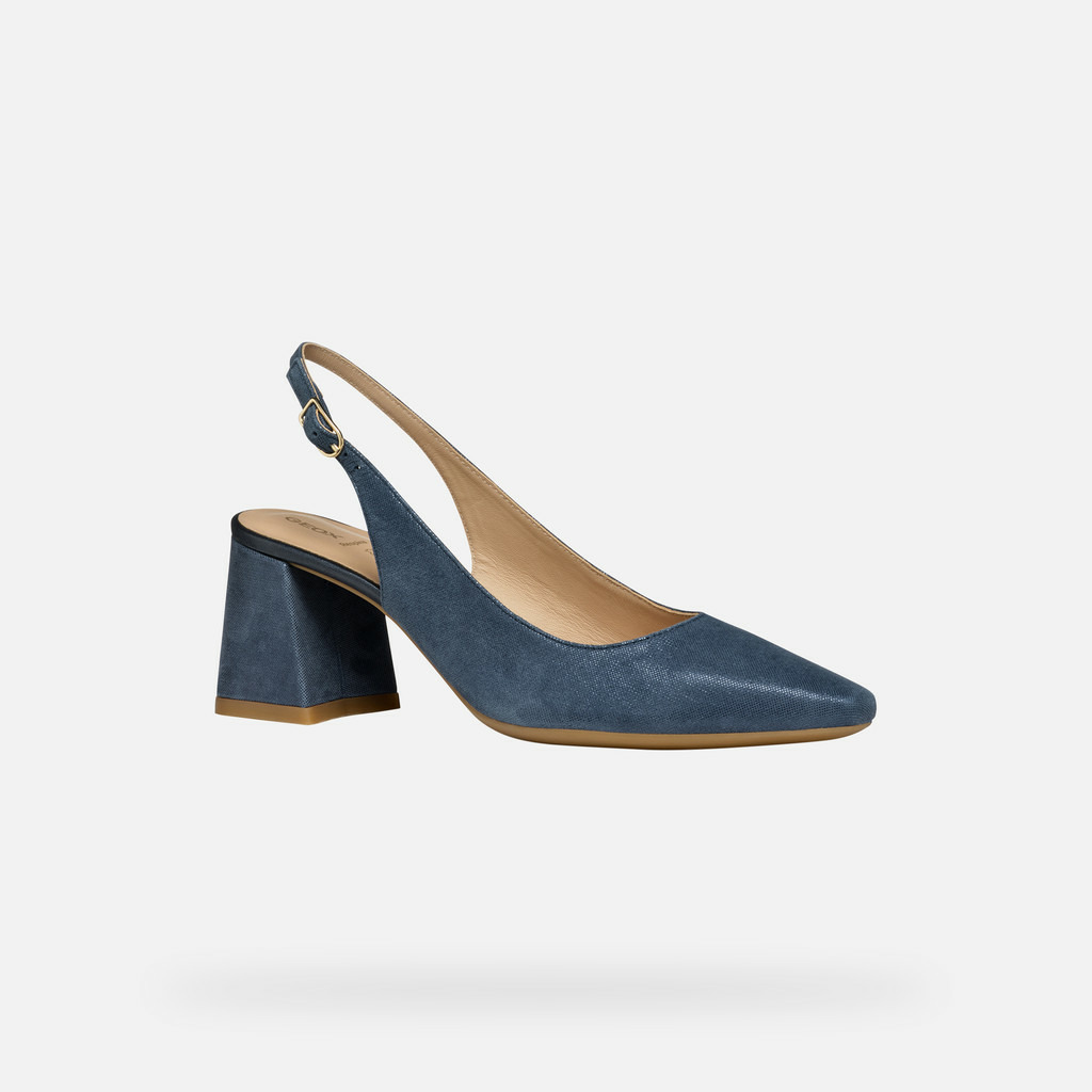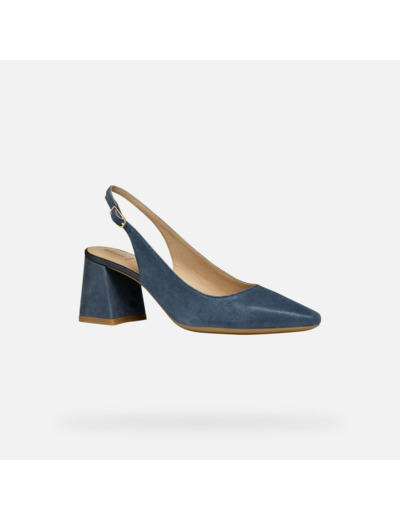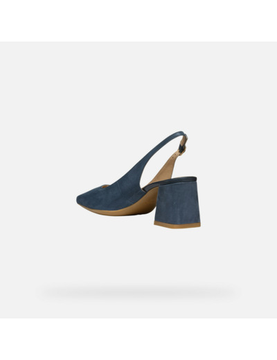 Tige en daim brillant bleu aviateur foncé, composition 100% cuir pour la tige et mélange cuir-synthétique pour la doublure. Talon large confortable, design slingback pour un maintien ajusté et aéré.